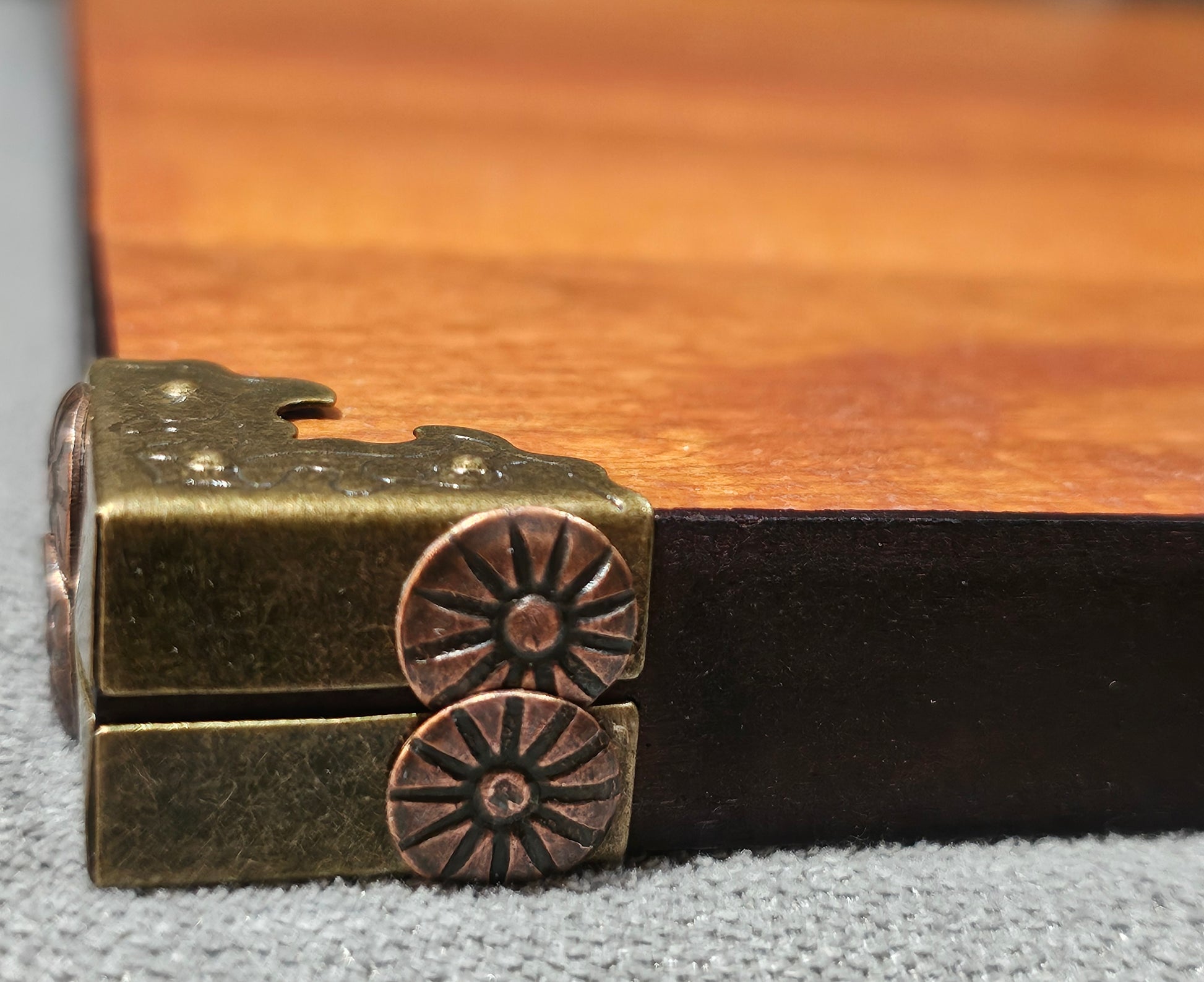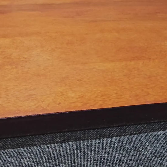 ​Solid Birch Top: Durable hardwood surface featuring natural dark strikes and rich grain patterns.